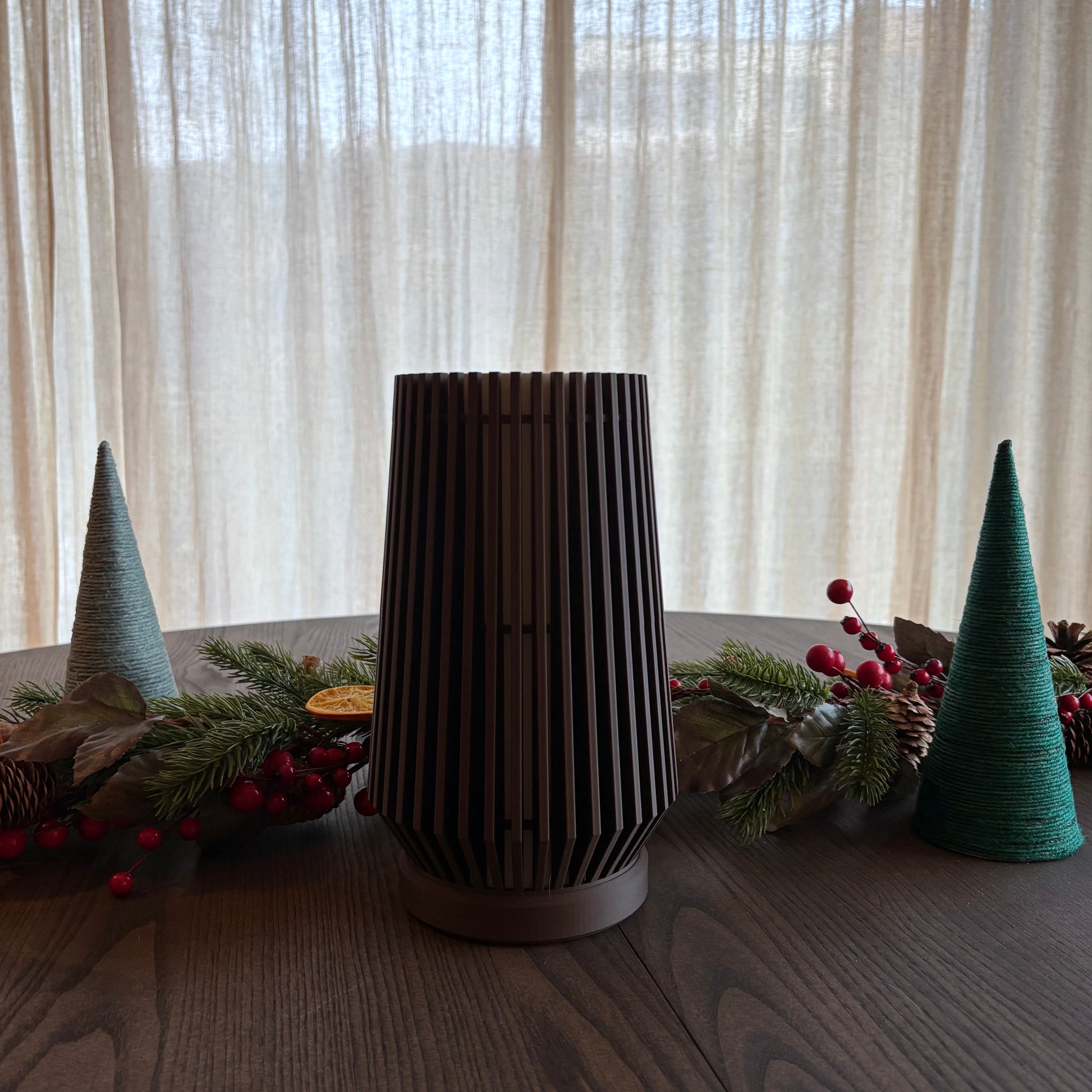 Lampen er 3D-printet i matt finish i fargen Dark Chocolate. Materialet er et biologisk nedbrytbart og miljøvennlig biopolymer, noe som gjør den både pen og ansvarlig produsert. Den matte overflaten skaper et varmt og moderne uttrykk som passer inn i de fleste hjem.