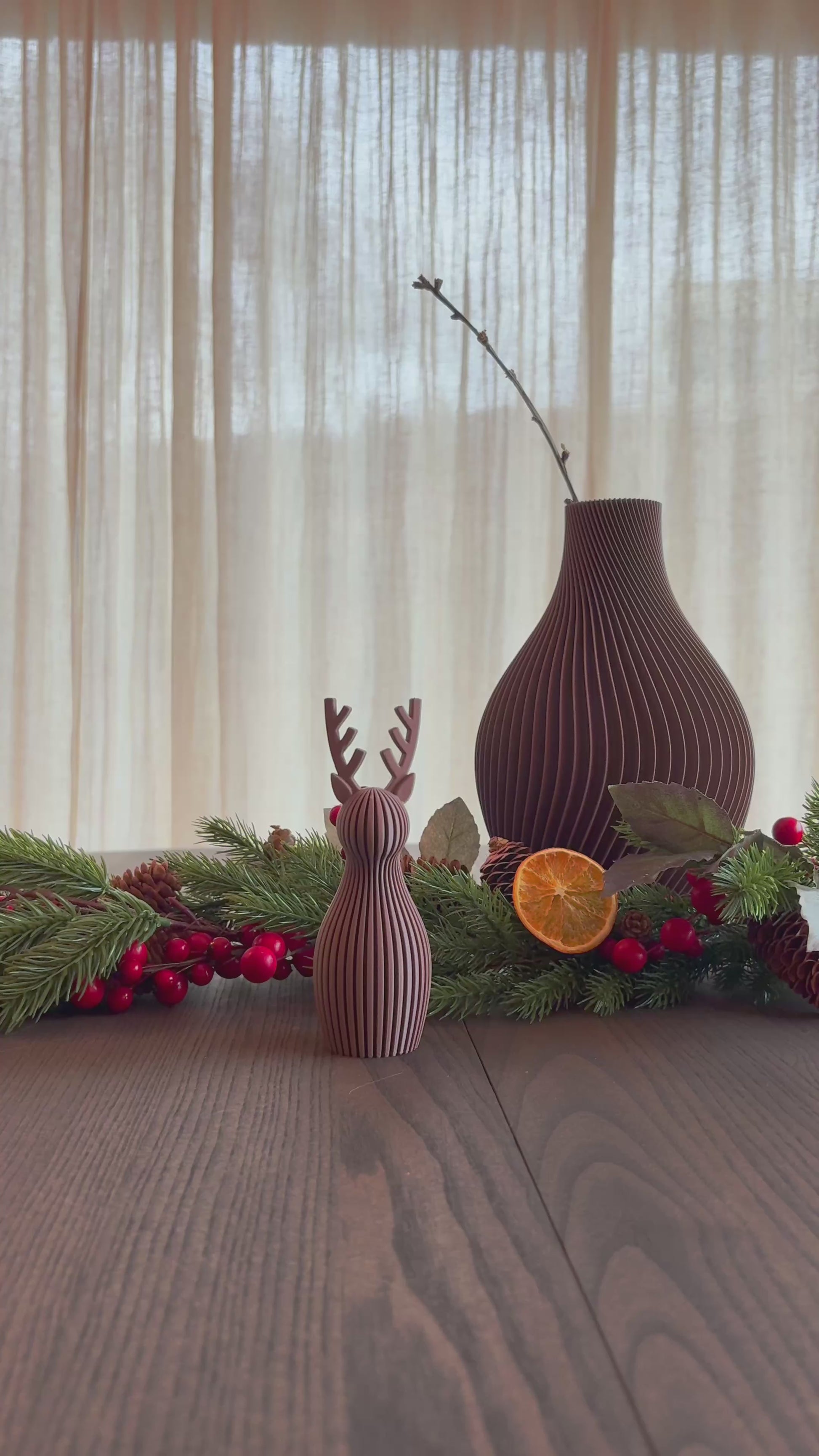 Reinsdyrene er 3D-printet i matt finish i fargen Dark Brown. Materialet er et biologisk nedbrytbart og miljøvennlig biopolymer, noe som gjør dem både pene og ansvarlig produsert. Den matte overflaten skaper et varmt og moderne uttrykk som passer inn i de fleste hjem.