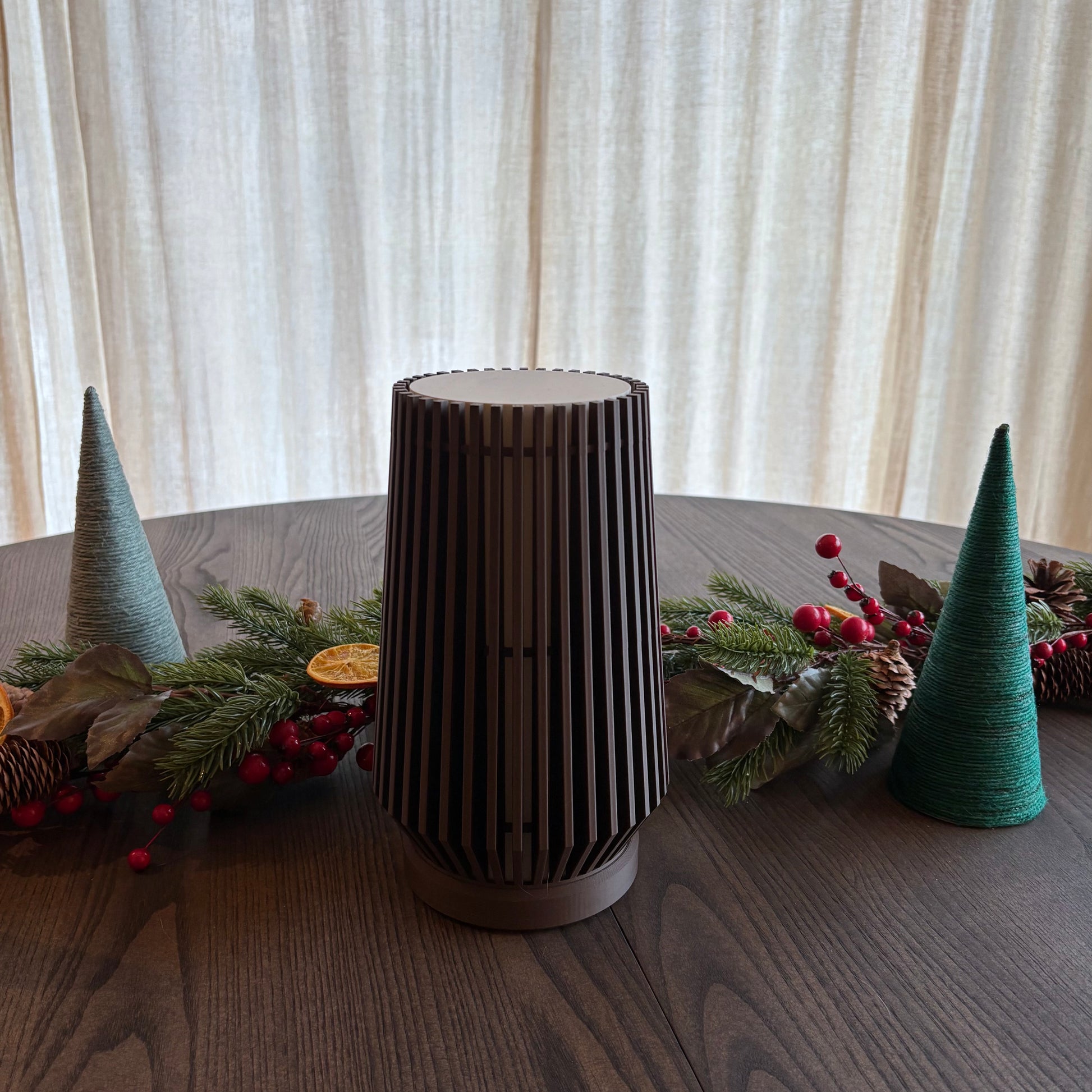 Lampen er 3D-printet i matt finish i fargen Dark Chocolate. Materialet er et biologisk nedbrytbart og miljøvennlig biopolymer, noe som gjør den både pen og ansvarlig produsert. Den matte overflaten skaper et varmt og moderne uttrykk som passer inn i de fleste hjem.